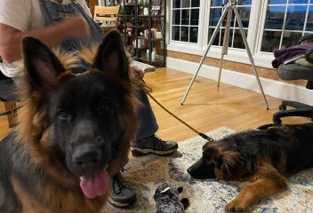 wir mit den Hündinnen Dunja und Diva, die zusammen