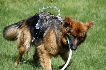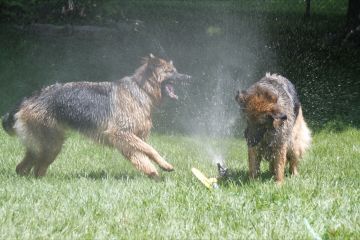 entweder mit dem Wasserschlauch spielen, oder im Plantschbecken |