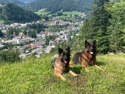 27. Juli 2025 Einige schöne Tage hatte "Hundemama" zusammen mit Koko im wunderschönen Berchtesgaden verbracht. Koko und Mogli, der Bruder zu unserer Mina, verstanden sich auf Anhieb. Mit den nachstehenden Bildern möchten wir einen kleinen Einblick geben. Auch haben wir heute nochmals die Teilnehmerliste für unseren 20jährigen Jubiläum "Barrett-Wandertag um weitere Teilnehmer und auch T-Shirt-Bestellungen ergänzt. Sollte ein Teilnehmer oder eine T-Shirt-Bestellung vergessen worden sein, bitten wir um Nachricht. Bitte, den Anmeldeschluss für die T-Shirt-Bestellung sowie die Teilnahme im Auge behalten. |