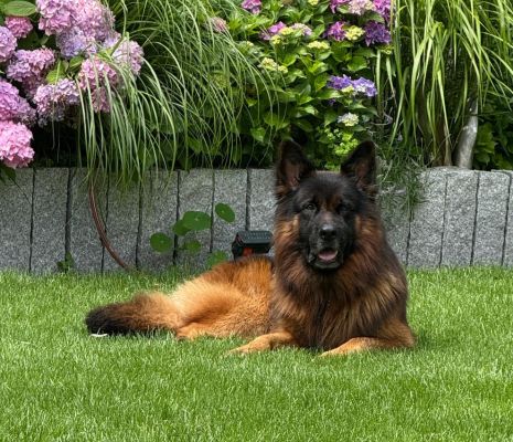 23. Mai 2025 Seit unserer letzten Aktualisierung hat sich im Haus-Barrett wieder etwas getan. Der Jungrüde "Zeppo vom Team Barrett", ein Sohn des Weltsiegers 2024 "Gnabry von der Baiertalerstraße , hat an der ZAP erfolgreich teilgenommen. Auch feierte er am 14. Mai 2025 seinen zweiten Geburtstag. Somit darf er ab jetzt als "Deckrüde" eingesetzt werden. Über seine HD- und ED-Auswertungen hatten wir in der Vergangenheit schon berichtet. Er bekam das beste Ergebnis. Unser Champ und er stammen ab aus der gleichen Mama, unsere "Gina vom Team Barrett", die vor einem Jahr ihr Rentendasein antrat. Sie ist noch sehr vital für ihr Alter. Für Zeppo werden wir in Kürze eine "Deckrüdenseite" eröffnen Zur Zeit befindet sich Zeppo mit seinem Frauchen in Schweden, wo sie zusammen den Sommer genießen. Wir wünschen beiden eine gute Erholung! |