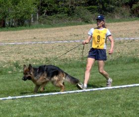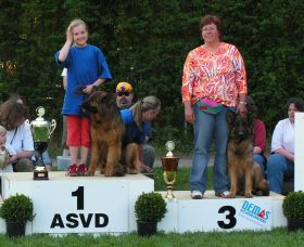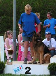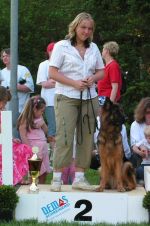 "Hundemama" mit Tabaluga auf dem Treppchen. 2. Platz in der Zuchtklasse |