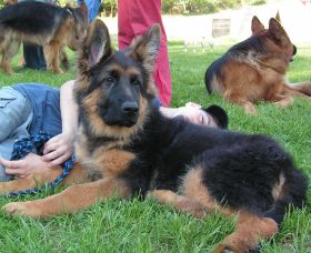 Es wurde auch eine Nachkommensgruppe von unserem "Gustl" vorgestellt, von rechts nach links, Grizzly, Querido, Simon, Astro, Grizzly, Anja, Jane, Balto u. Indiana |