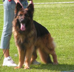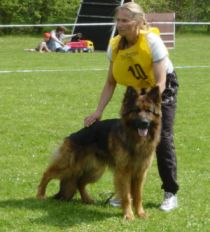 Sie kam auf den ersten Platz. Cindy zog gerade ihren letzten Wurf mit den beiden Mädchen Honey und Hera auf. Sie ist eine außergewöhnlich stolze Hündin. Wir verdanken ihr unsere Hündinnen Gina, Nora, Queeny und jetzt auch noch Hera. Sie wurde jetzt aus der Zucht genomen |