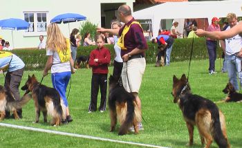 Vorführen der Zuchtklasse; hier Jack mit Cindy |