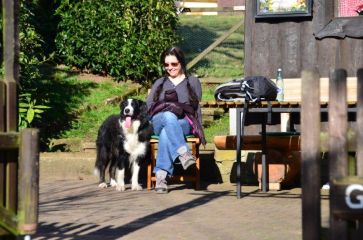 Bei schönem Wetter kann man auch draußen sitzen; Hundemama