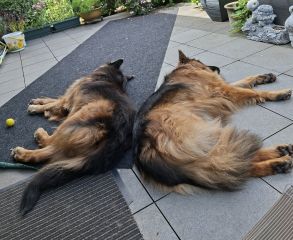 Links die 10jährige Hündin Ubetty, ein Nachkommen