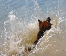 Bella liebt das Wasser, sie möchte nur schwimmen |