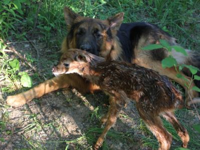 zu sein. Der Dalmatinerhündin habe ich erst mal klagemacht, dass ich ein Welpe bin