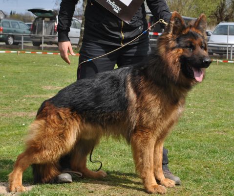 Groß, mittelkräftig, ausdrucksvoll, trocken und fest. Kräftiger Kopf, hoher Widerrist, fester Rücken, etwas kurze Kruppe, hinten sehr gut und vorne gut gewinkelt, gerade Schrittfolge und Frontstellung, etwas kurze Unterbrust, sehr gute Gänge mit wirksamen Nachschub, wobei der Vortritt freier sein sollte. Sicheres Wesen, TSB ausgeprägt