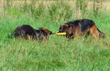 Junghunden spielen. Zu schnell passieren hier Verletzungen