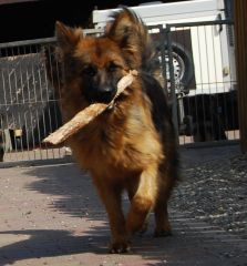 angelegter Kopf, sehr schönes langes Haar mit viel Pigment, sehr gutem Spieltrieb,