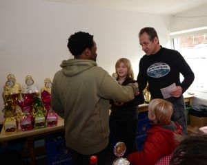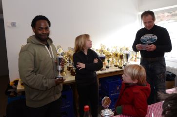 Sein erster Pokal wird ihm überreicht und dieser wurde ihm