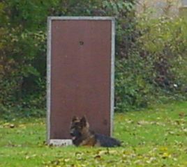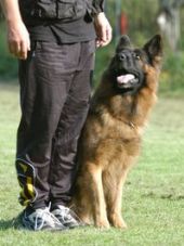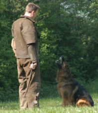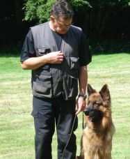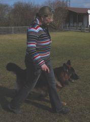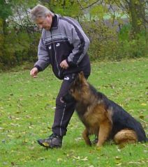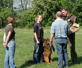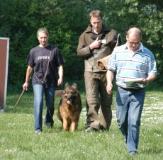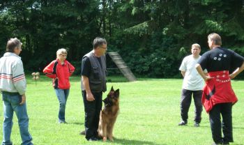 dahinter, einen Hund, so wie jetzt Yakko vorgeführt wurde, für die Begleithundeprüfung