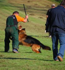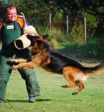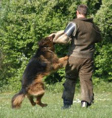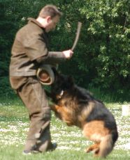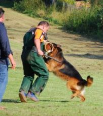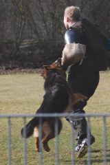 Tabaluga leicht am Hinterlauf während der Anfangsphase des Schutzdienstes,