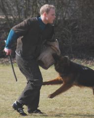 Auf Kommando "Aus" muss sie den Ärmel loslassen |
