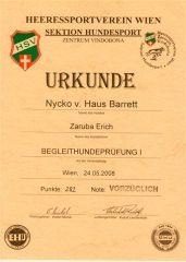 höchsten Prüfungsstufe VPG 3. Er kam auf den 2. Platz. In beiden Sparten Unterordnung