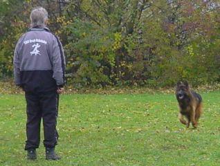Auf Kommando "Hier" muss die Hündin schnell zurückkommen |