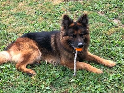 Genauso wie sein Halbbruder "Lucky" liebte er es, mit seinem Ball zu spielen. Keiner durfte ihm diesen Ball, ob grün oder orange, wegnehmen. Diese Eigenschaft hat er auch seinem Sohn "Jango" weitergegeben