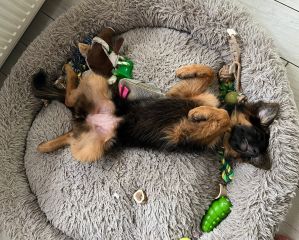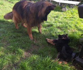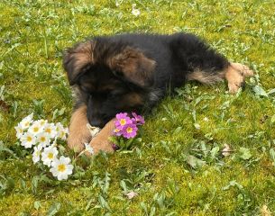 allesamt sehr aufgeweckt sind, bis auf eine Hündin,